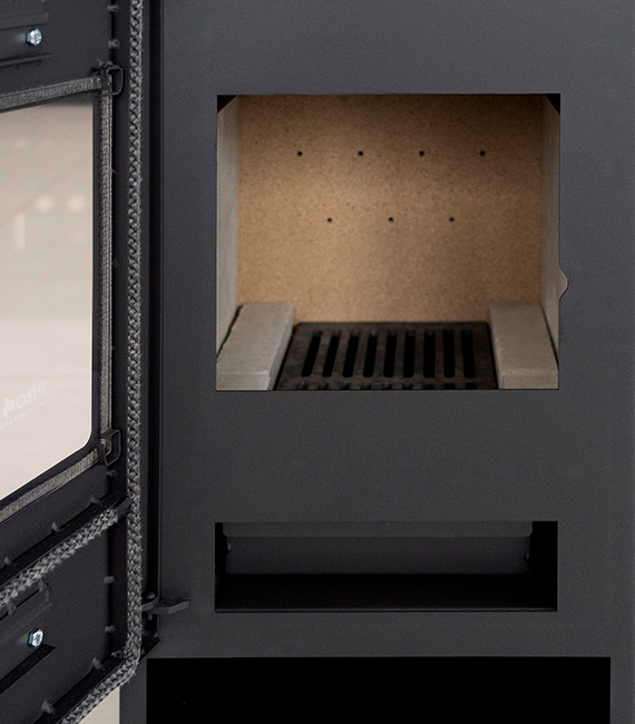 Тази камина не само че спестява дърва, но и намалява замърсяването на околната среда. Освен „Първичен“ и „Вторичен“ въздух, тя разполага и с „Третичен въздух“, който: